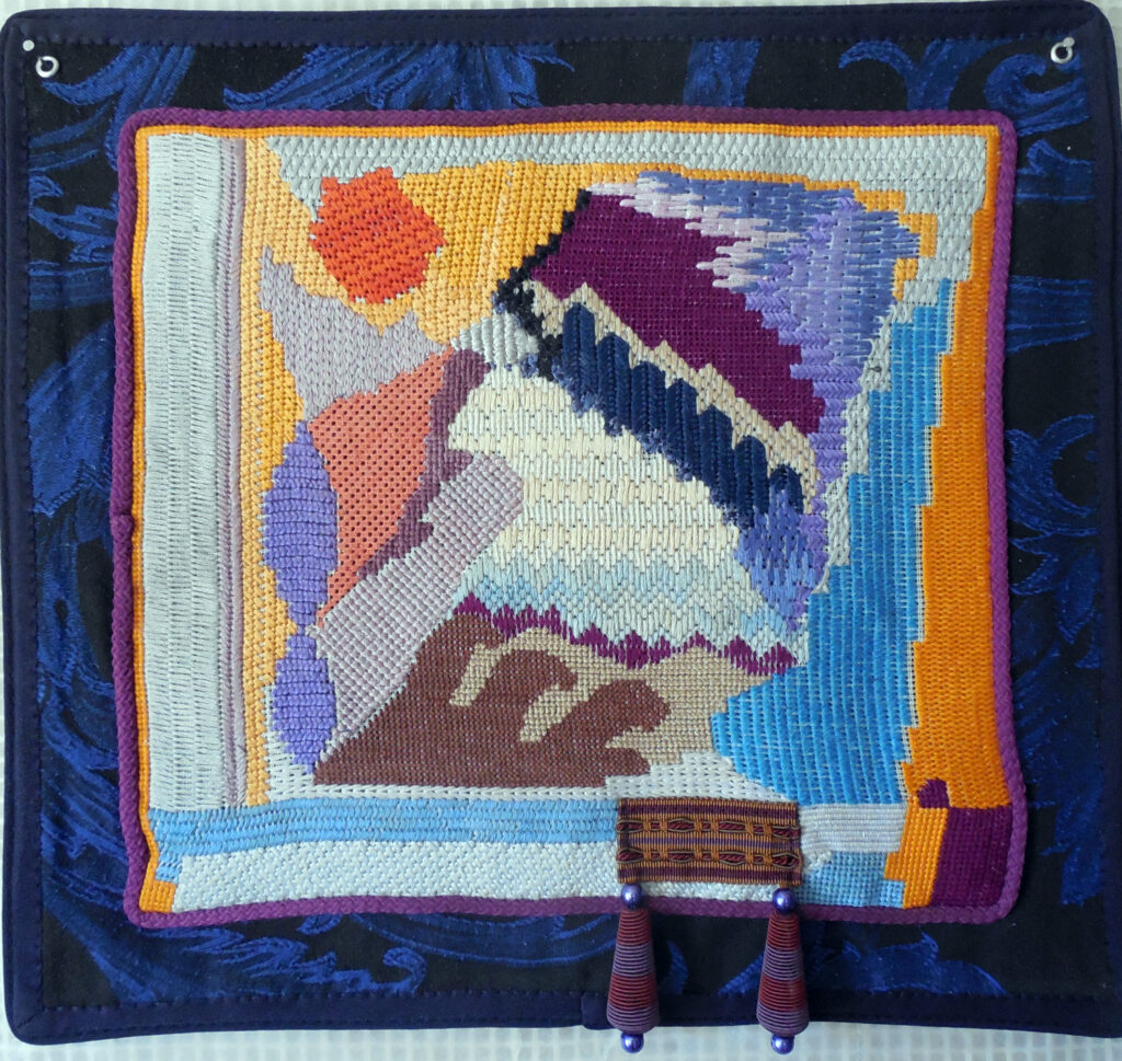 large (43×76″) embroidered mural with fabric backing – hangs with invisible brass loops