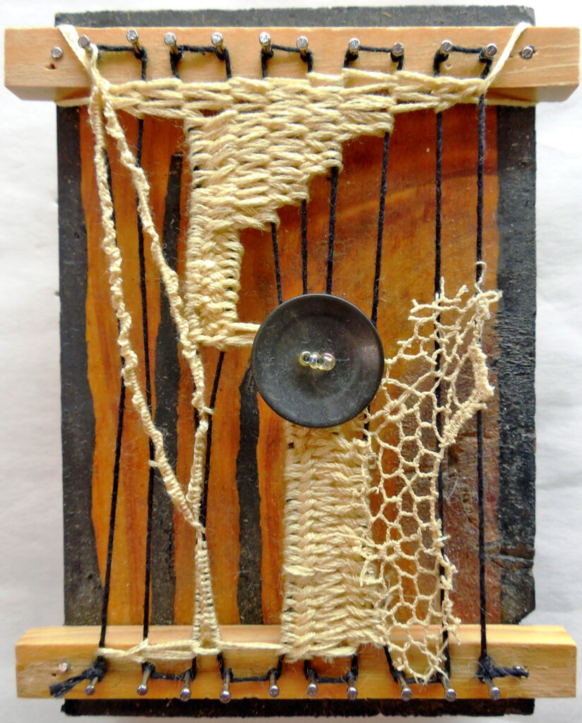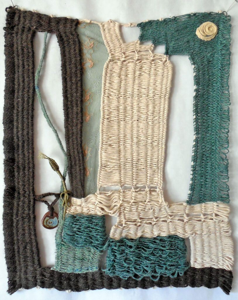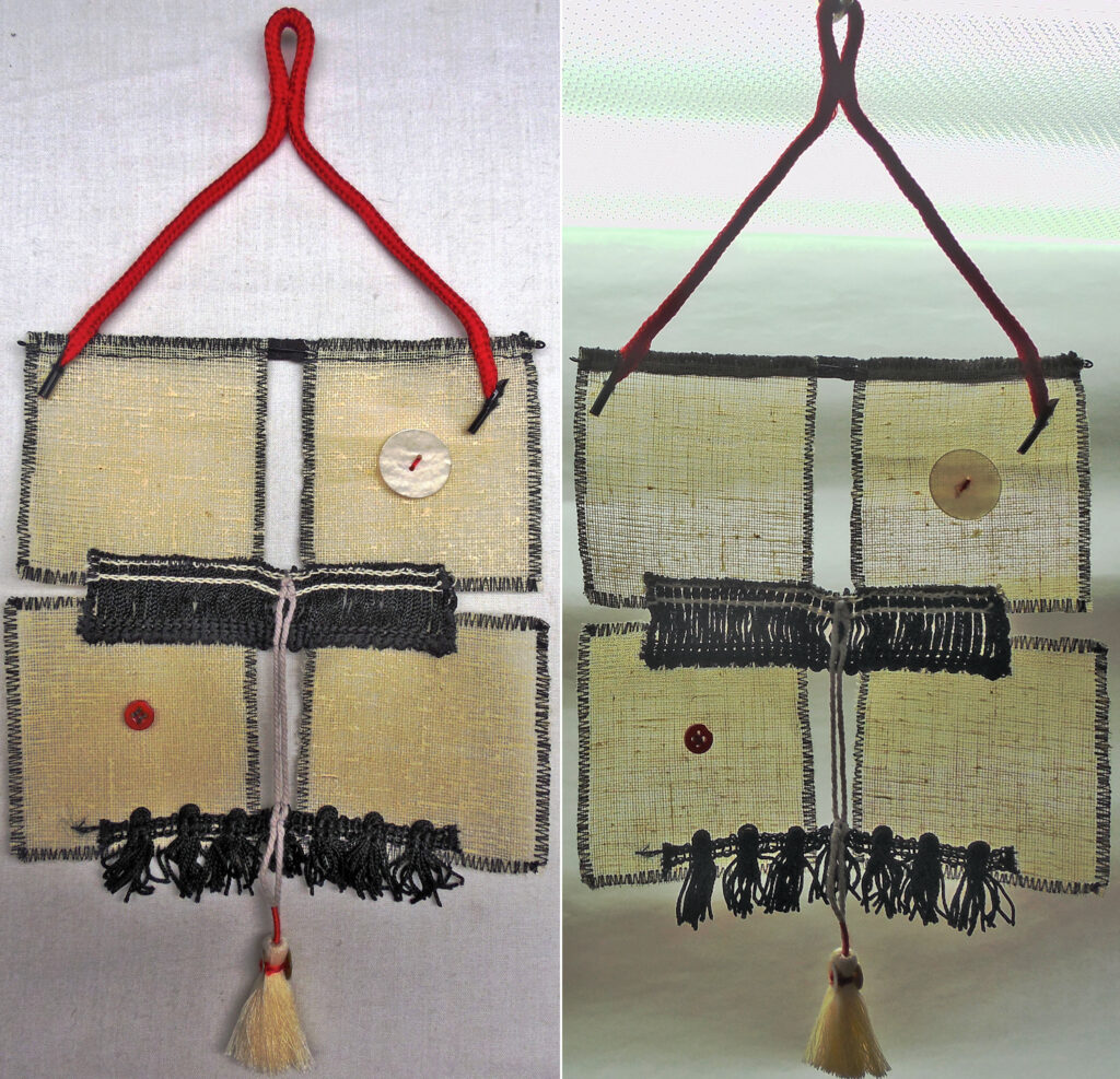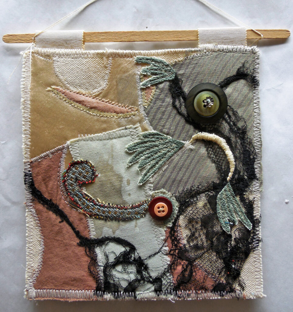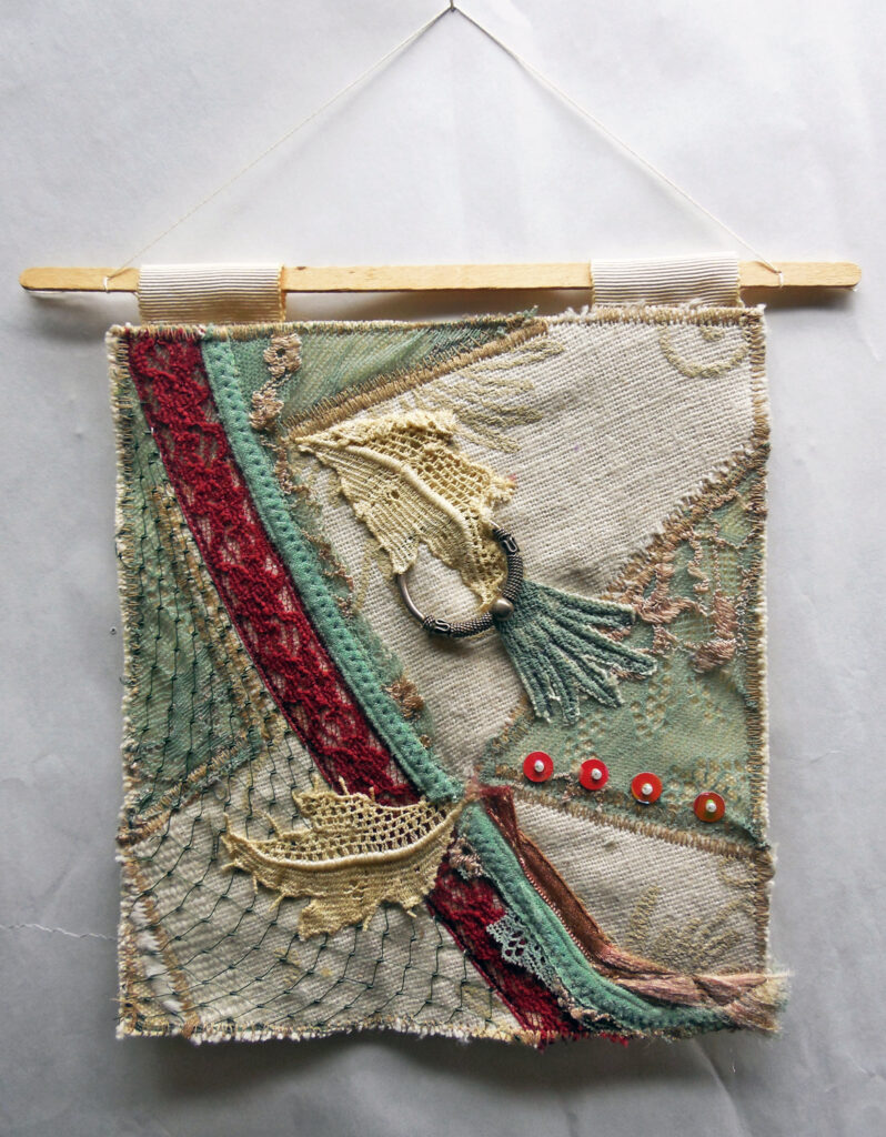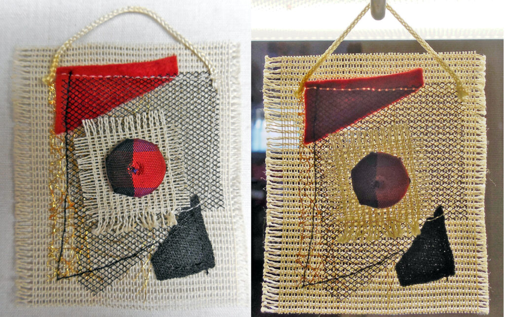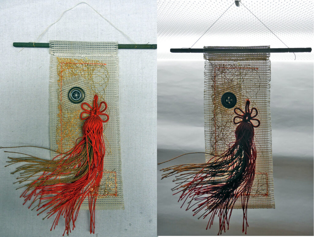 small, semi-transparent hangings in mixed fiber media
