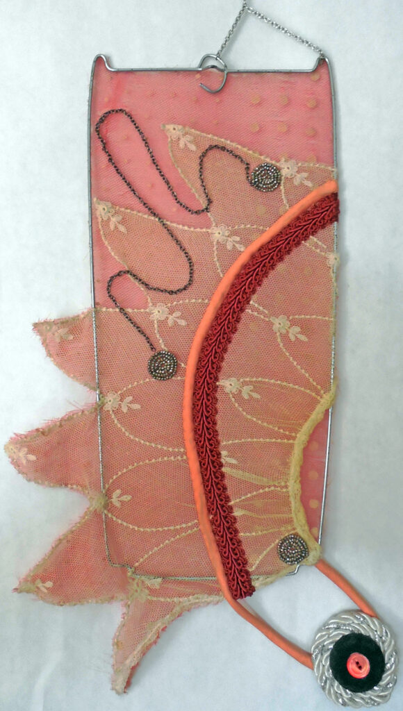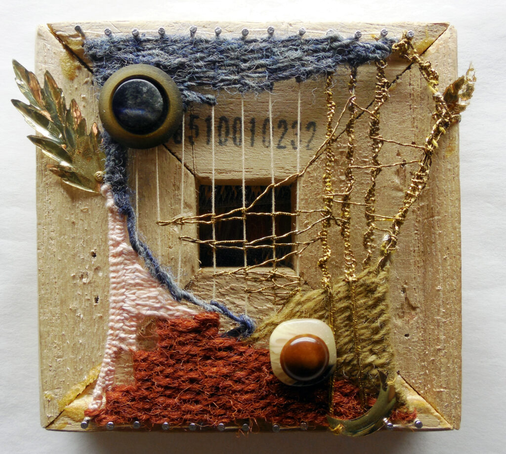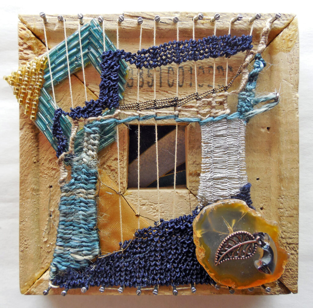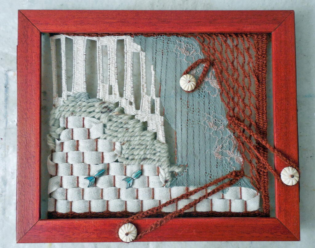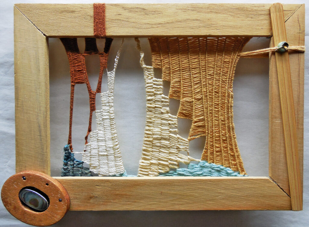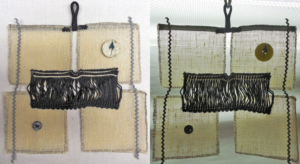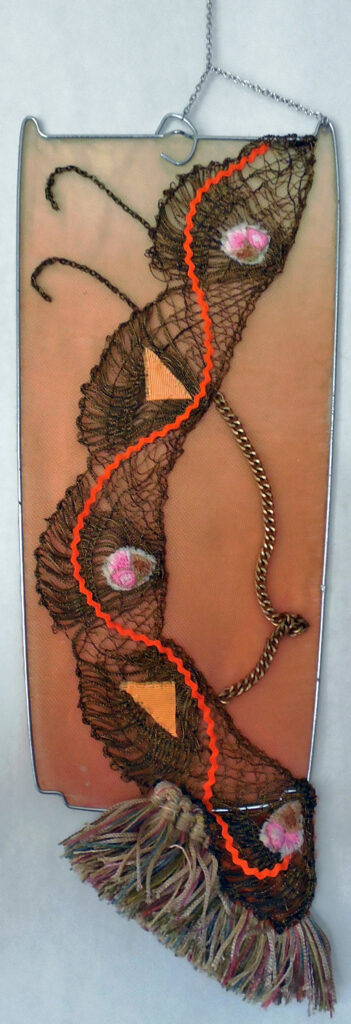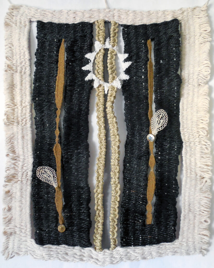 small, semi-transparent hangings in mixed fiber media