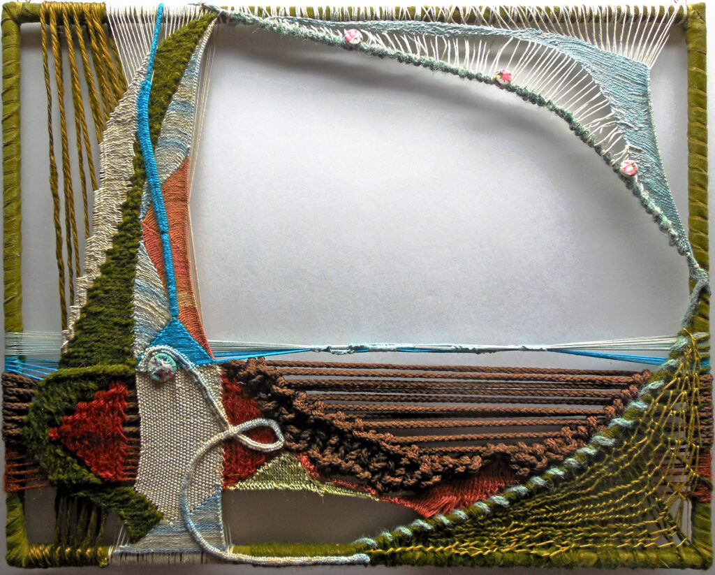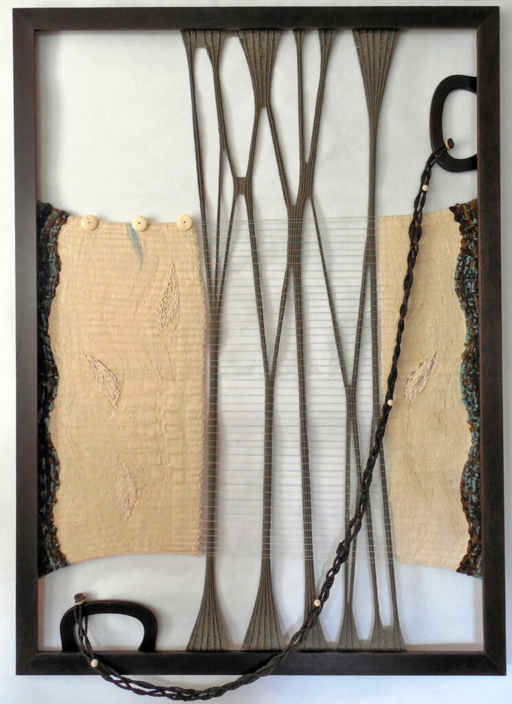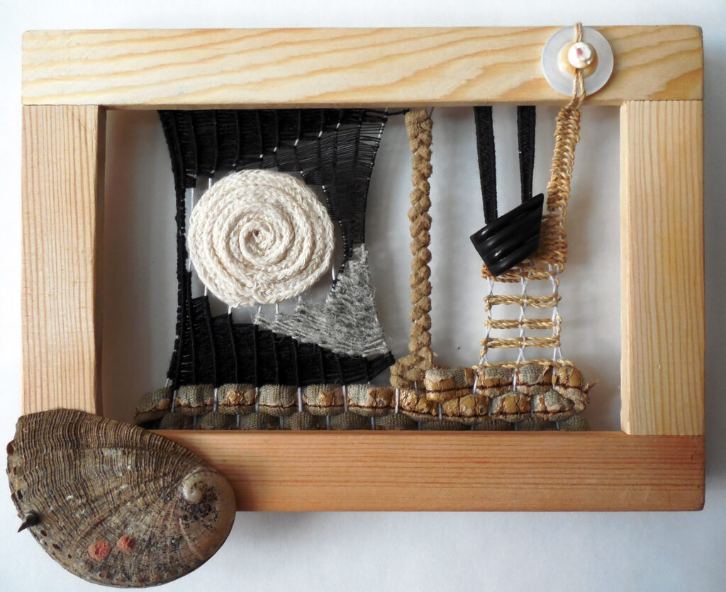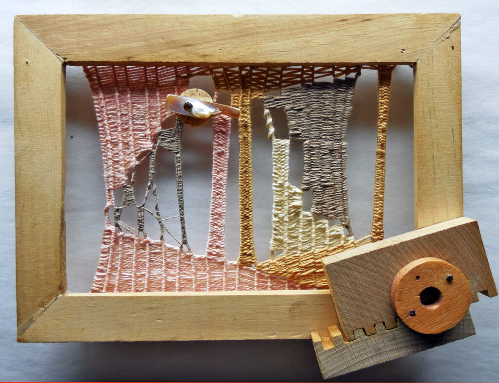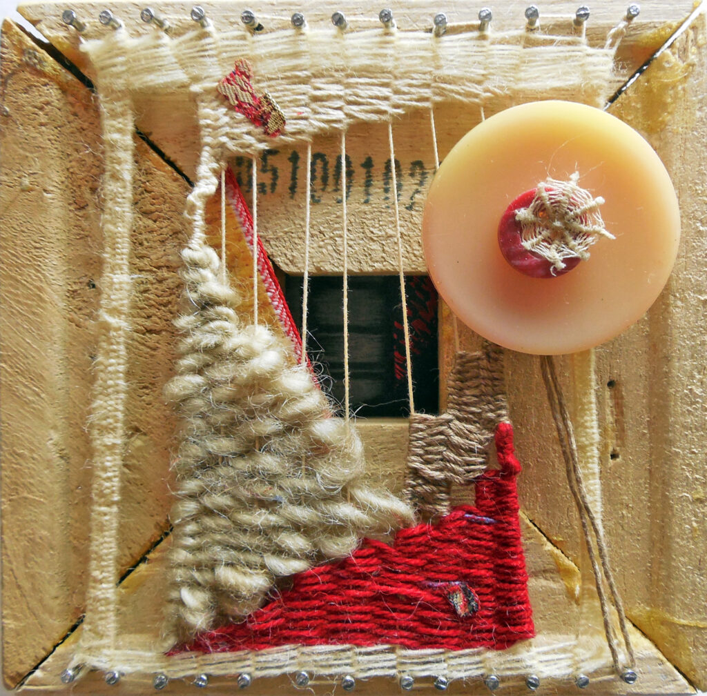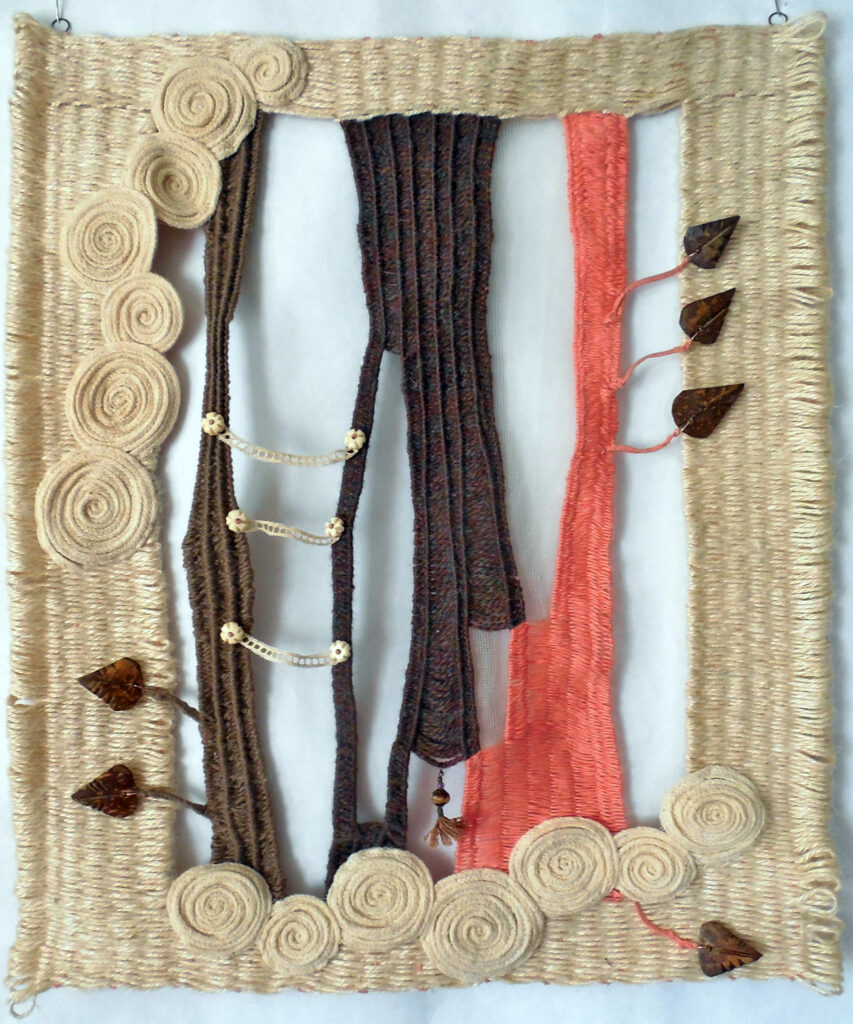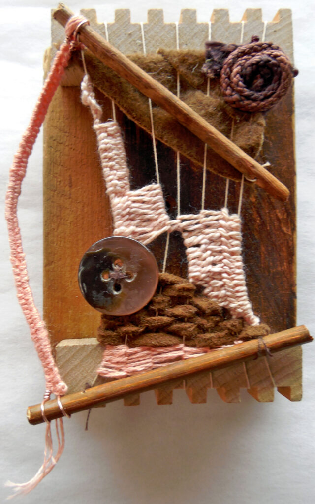 small, semi-transparent hangings in mixed fiber media
