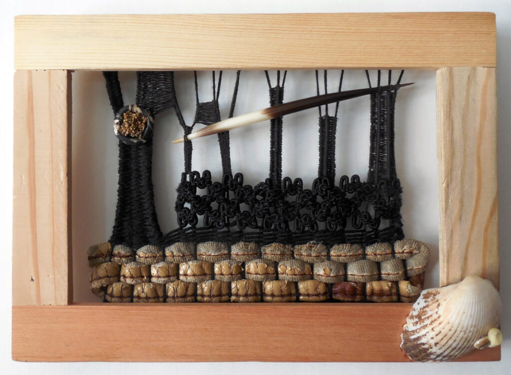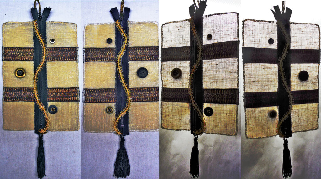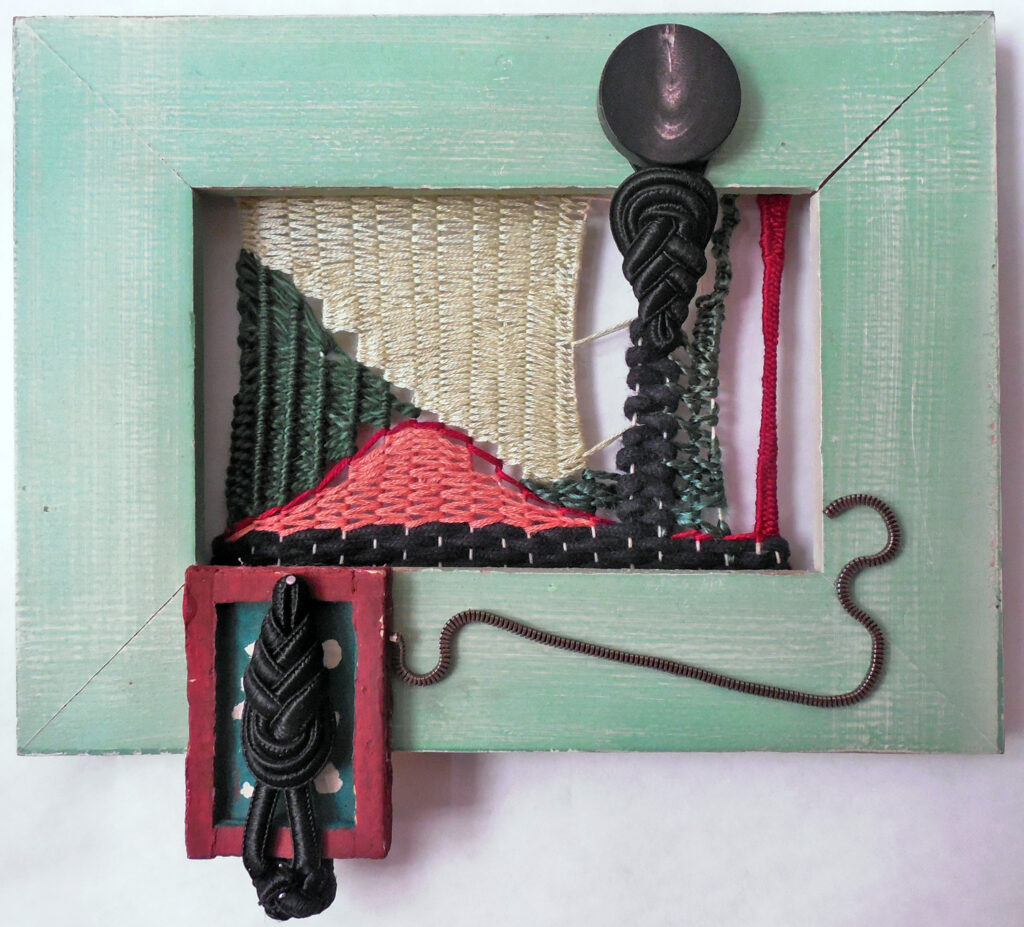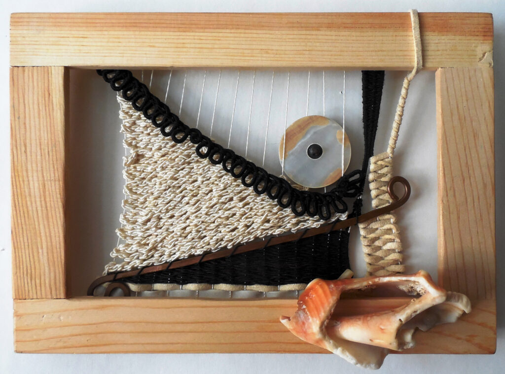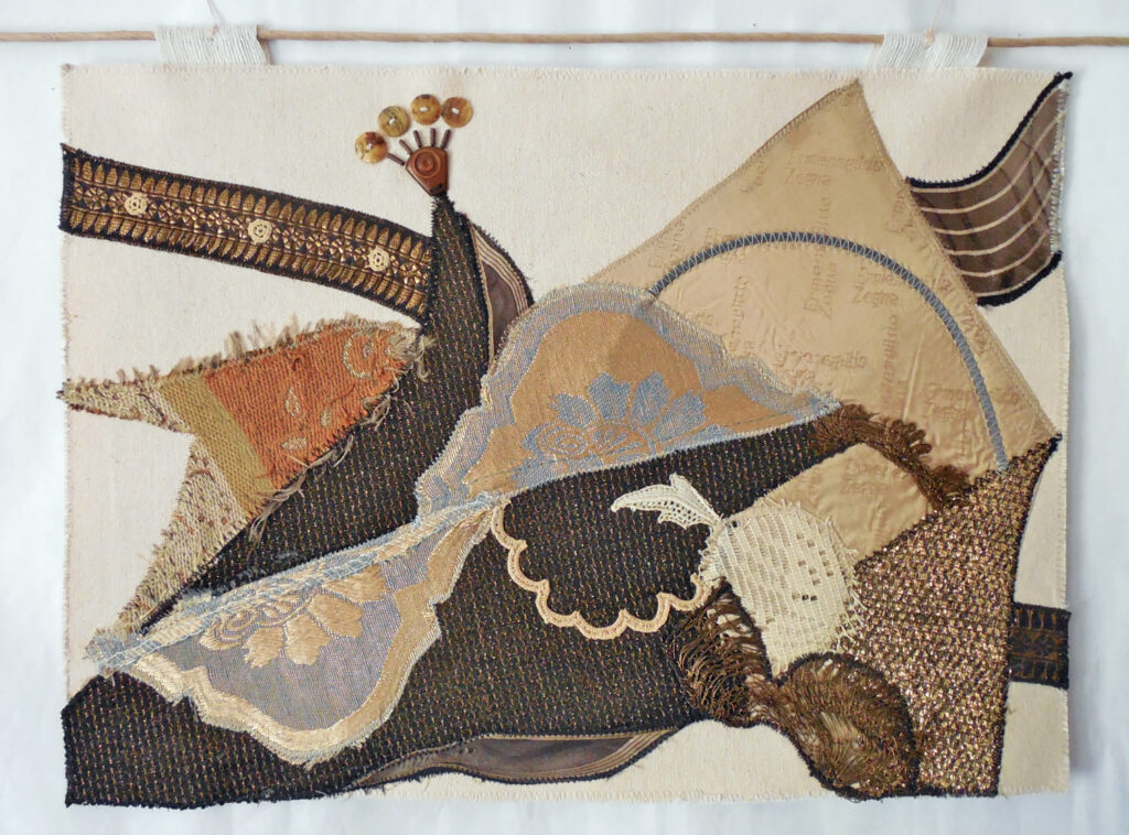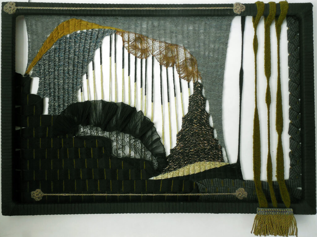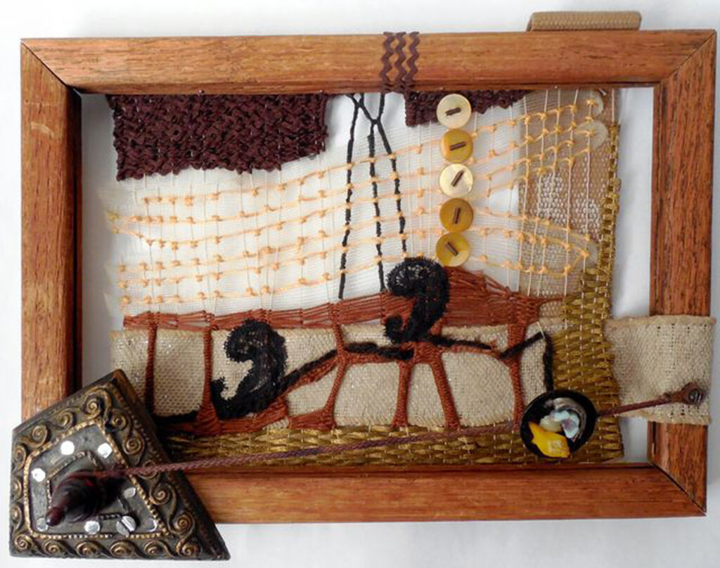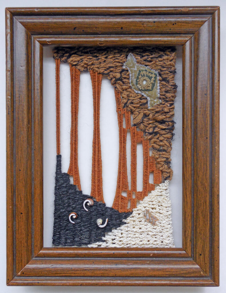 small, semi-transparent hangings in mixed fiber media