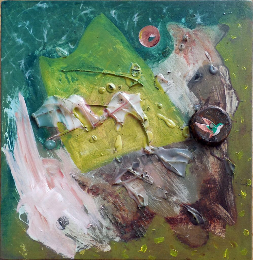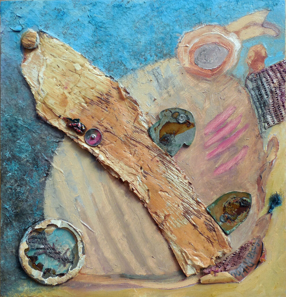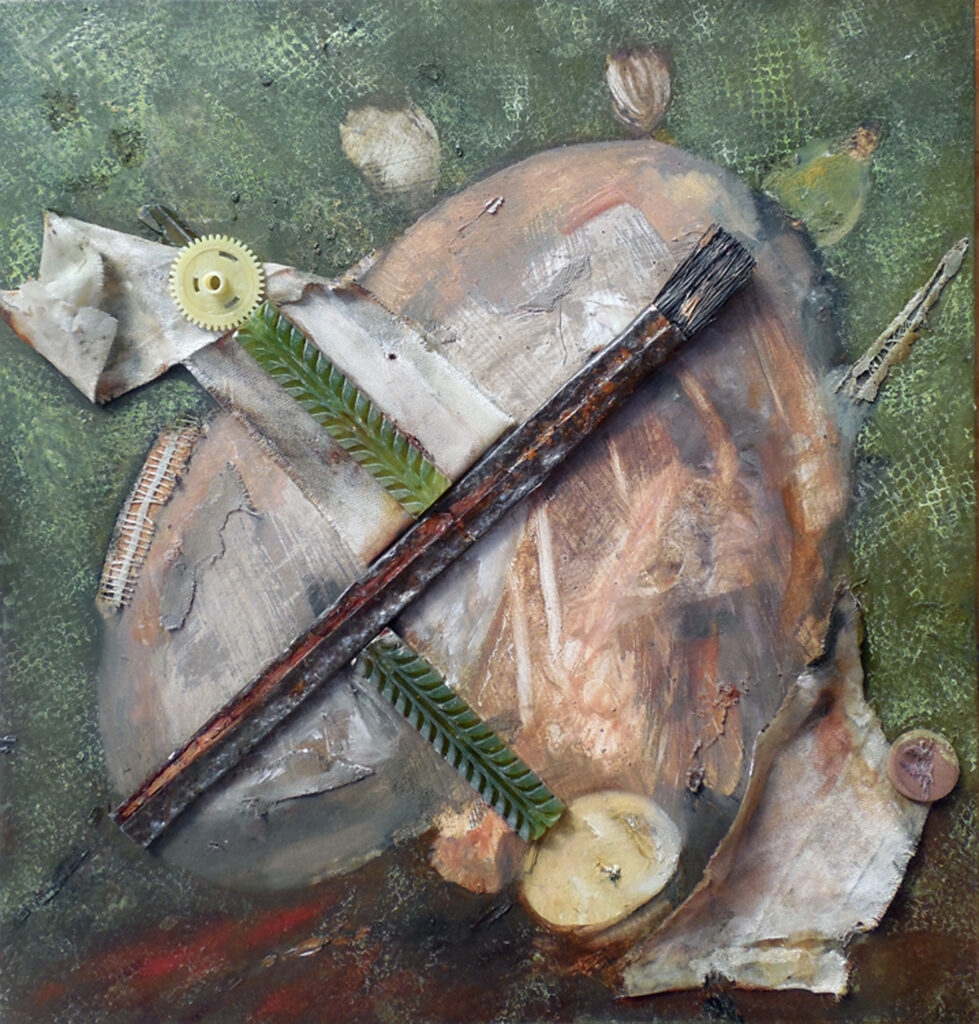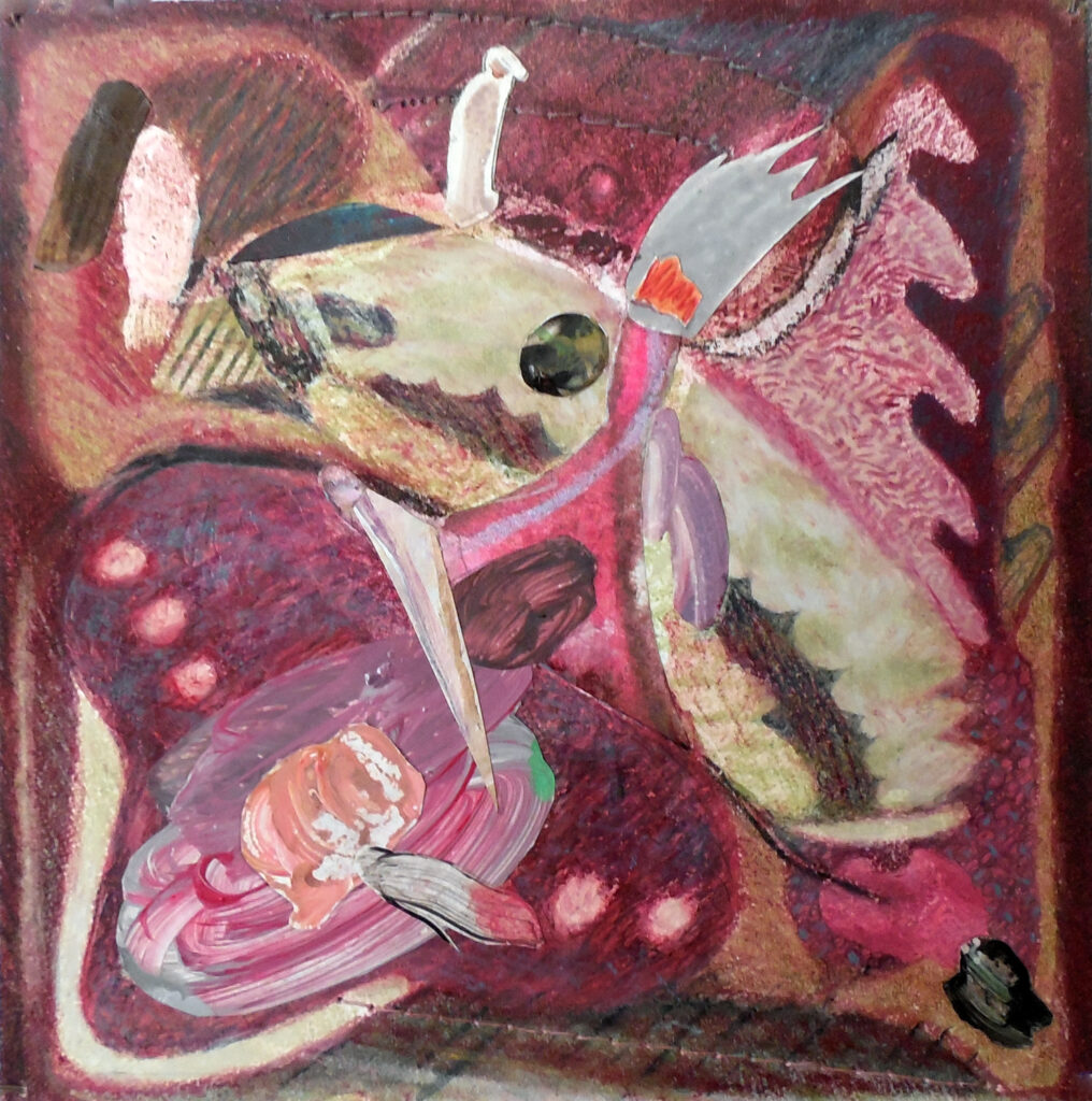 metamorphoses (2021) – oil and collage on canvas board