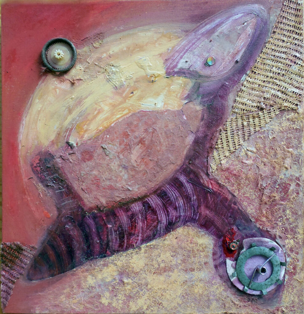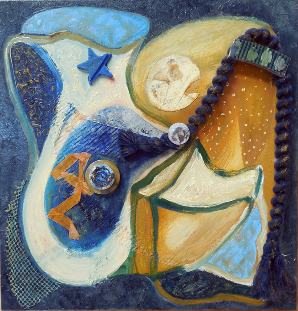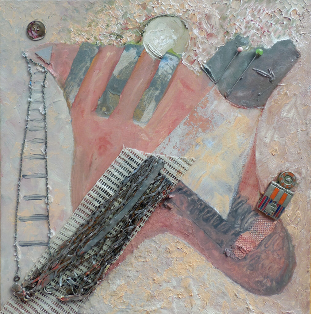metamorphoses (2021) – oil and collage on canvas board